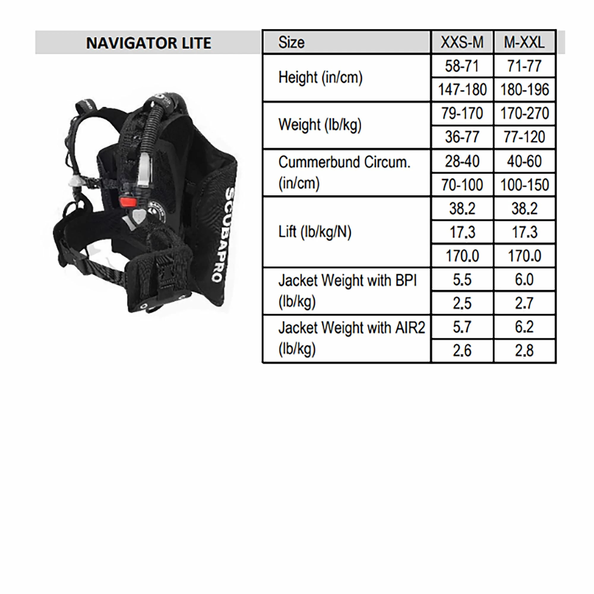 Navigator Lite, nový lehký kompenzátor pláště SCUBAPRO s nafukováním na zádech, je ideální pro rekreační potápěče, kteří preferují černou flotaci v jednoduché, ale odolné podobě s výhodou zajímavých barevných kombinací. Nový Navigator Lite, který má podobnou hmotnost jako současný kompenzátor pláště Litehawk, je postaven na měkkém postroji Airnet®, díky čemuž je lehký, skládací a vhodný na cestování. Navigator Lite také nabízí novou funkci, kterou žádný jiný kompenzátor SCUBAPRO nenabízí - vyměnitelné kryty duše, které se dodávají v šesti barevných variantách pro barevné přizpůsobení vaší potápěčské výstroji. Kryty duše musí nainstalovat autorizovaný technik SCUBAPRO. Kompresor je dodáván se snadno nastavitelným systémem přezek Quick Cinch, který je doplněn 50mm suchým zipem na lahev. Společně zajišťují pevnou stabilizaci lahve za všech ponorových podmínek. Má dvě odnímatelné kapsy, každá se dvěma měkkými D-kroužky. Tyto kapsy lze umístit buď otvorem nahoru pro nošení příslušenství, nebo dolů pro rychlé uvolnění zátěže. Navigator Lite se dodává ve dvou roztažitelných velikostech, XXS až M a M až XXL, s mírným překrýváním, takže si můžete být jisti, že najdete perfektní velikost pro vaše další potápěčské dobrodružství.