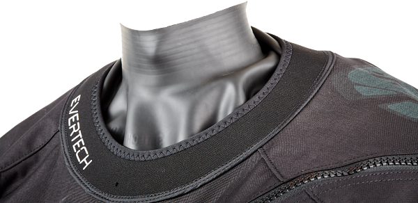 Evertech Dry Breathable je špičkový trilaminátový suchý oblek, který nabízí mnoho. Tento oblek zaujme svou vynikající kvalitou: Je vyroben z prodyšného trilaminátu nylon/PU/nylon, má prošívané, dvojitě podlepené švy, diagonální, vodotěsný přední zip a systém těsnicích kroužků Si-Tech pro těsnění zápěstí a krku, stejně jako ventily Si-Tech. Dvě velké kapsy, vylepšený pár lehkých, všitých návleků na botičky a modré kšandy jsou jen některé ze standardních prvků tohoto obleku, které vás udrží v suchu a pohodlí za všech podmínek. Díky vynikajícímu materiálu je Evertech Dry Breathable také extrémně lehký: oblek velikosti M váží pouhých 3,34 kg (bez kapuce, vaku a nízkotlaké hadice).